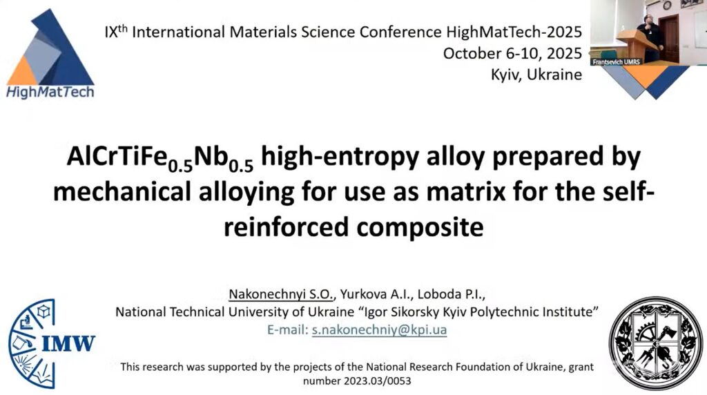Щиро дякуємо організаційному комітету HighMatTech-2025 за високий рівень проведення конференції, теплу атмосферу та можливість презентувати наші досягнення на такому авторитетному науковому майданчику!